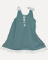 This swimsuit, featuring our Green print,is specially designed for babies between 6 months and 3 years old: it has ample room in the diaper area, and the seams around the legs are made with very soft and extremely elastic elastics. It features snap buttons in the lower part. The chest area is embroidered with our logo, depicting a family of ducks. The figures in this embroidery have a slight texture.